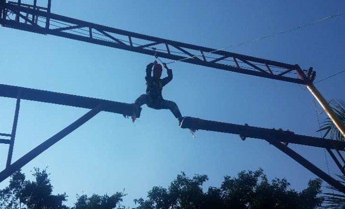 第一個任務,高空斷橋:克服心理障礙,增強自我控制能力;建立自信心,增強決斷力;學會用平常心對待新的嚴峻的挑戰;寶融團隊是我們最強有力的后盾,我們需要的只是勇往直前,堅決果敢,最后全員成功通關。
